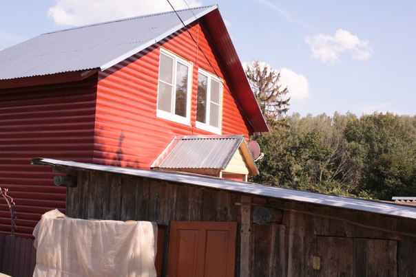 Деревянный дом с крышей подкрытой однулином, цвет ондулина красный.